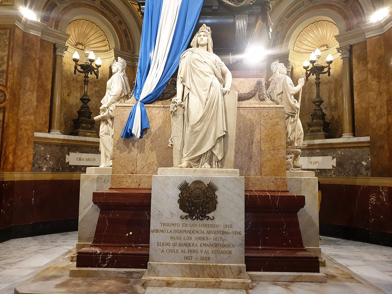1880 wurden die sterblichen Überreste von General José de San Martín von Frankreich nach Argentinien gebracht und bestattet. Das Mausoleum wurde von dem französischen Bildhauer Albert Carrier-Belleuse in Marmor verschiedener Farben entworfen. Der schwarze Sarkophag wird von drei lebensgroßen weiblichen Figuren beschützt, die die Länder Argentinien, Chile und Peru darstellen.