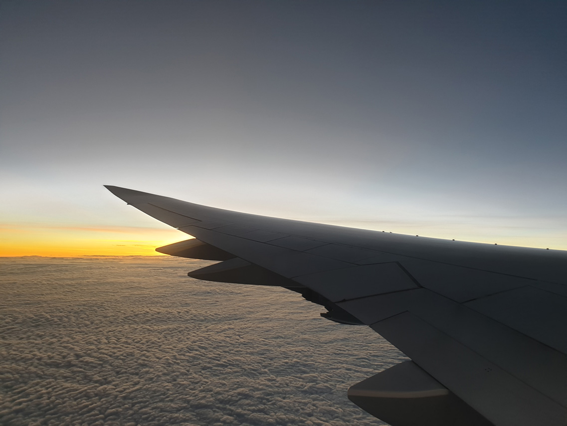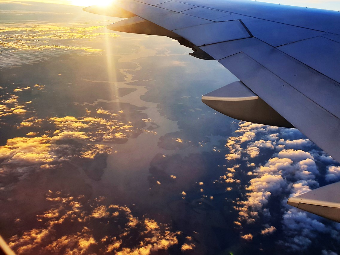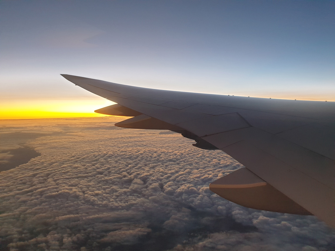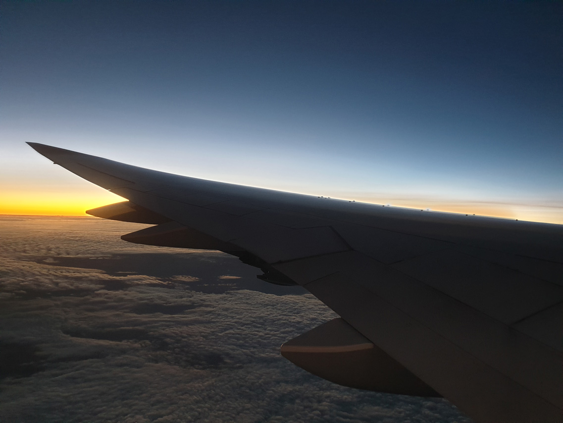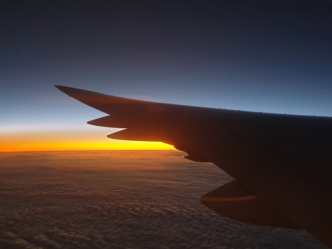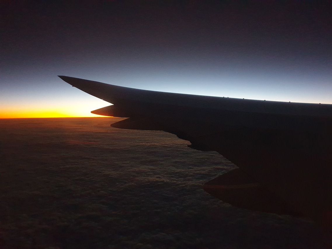 Während der Nacht schaue ich immer wieder aus dem Fenster und sehe schließlich einen wundervollen Sternenhimmel und das Kreuz des Südens. Ich kann mich von dem Anblick kaum trennen und werde melancholisch, doch die Müdigkeit übermannt mich und ich schlafe wieder ein. Als ich das nächste Mal aus dem Fenster schaue, entdecke ich am Horizont einen zarten gelben Schein. Sonnenaufgang! So gut wie es mit meinem Smartphone geht, mache ich immer wieder Fotos. Doch schaut selbst. Ist dieses Farbenspiel nicht mystisch?