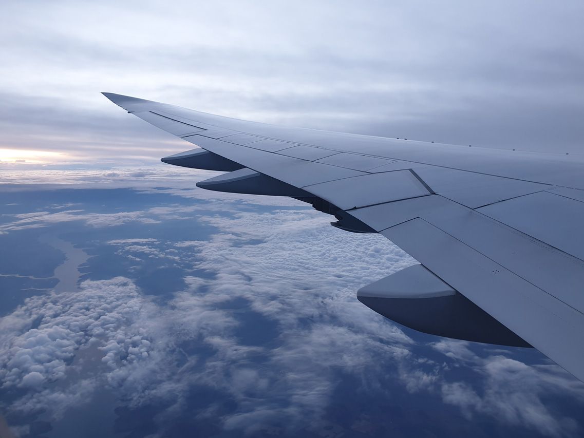 Vor uns liegen ein langer Flug und eine lange Nacht. Flug LH 510 von Frankfurt nach Buenos Aires ist der mit Abstand längste Lufthansa-Flug im Flugplan der Airline. Glücklicherweise wird noch nicht gestreikt und wir starten planmäßig. 11.765 Kilometer oder 7.133 Meilen liegen vor uns. Knapp 14 Stunden Flugzeit trennen uns von der Hauptstadt Argentiniens. Wir fliegen mit einer Boing 747-8 – natürlich Economy Class. Dafür nehmen wir das Sardinen-Feeling in Kauf.